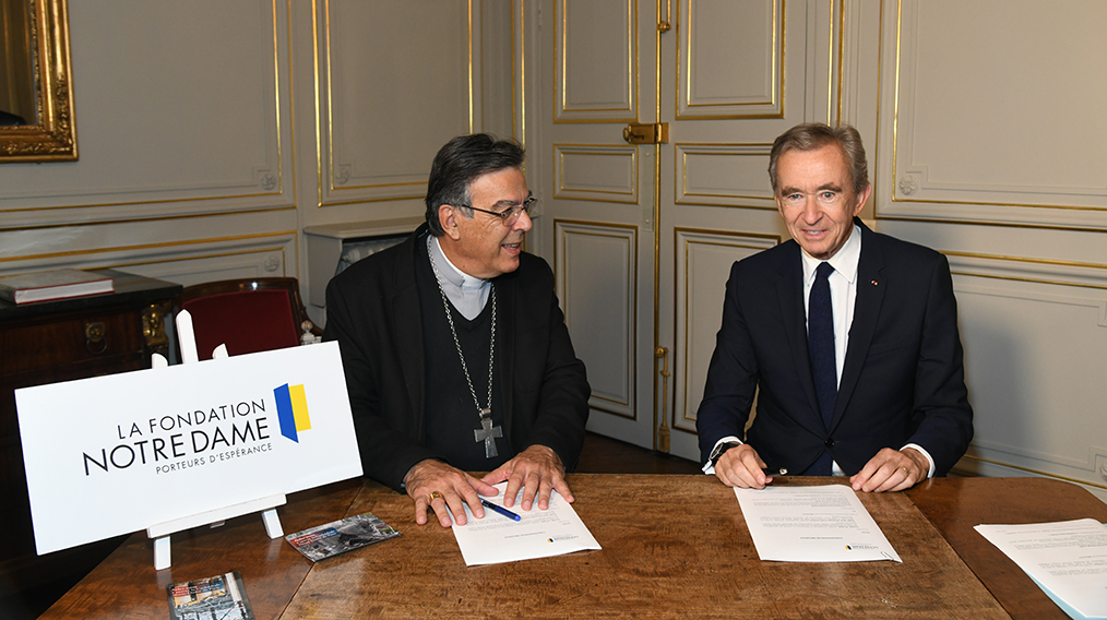 C’est à cette espérance et à cette solidarité que le groupe LVMH, ma famille et moi-même, avons voulu nous joindre en apportant notre contribution à la reconstruction de Notre-Dame. La Fondation Notre Dame sait qu’elle peut compter sur notre soutien et sur tous les savoir-faire que le groupe LVMH rassemble, pour redonner à la plus célèbre église de France tout le lustre et toute l’âme qui la font chérir et admirer du monde entier.